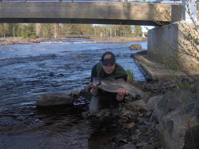 Koitelinkoskesta napannut meritaimen 29.5.-05. Pituus 70 cm. Ei punnittu, arvio n.4 kg.