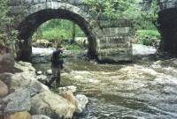 Kuvan henkilö kalastaa juuri maantiesillan alla eli sen montun kohdalla josta kirjon sain. Siis heti vanhan kivisillan jälkeen alavirtaanpäin. Samaisesta montusta nousi viime syksynä yli 70 cm taimen (kalastaja oli 13v miehenalku)