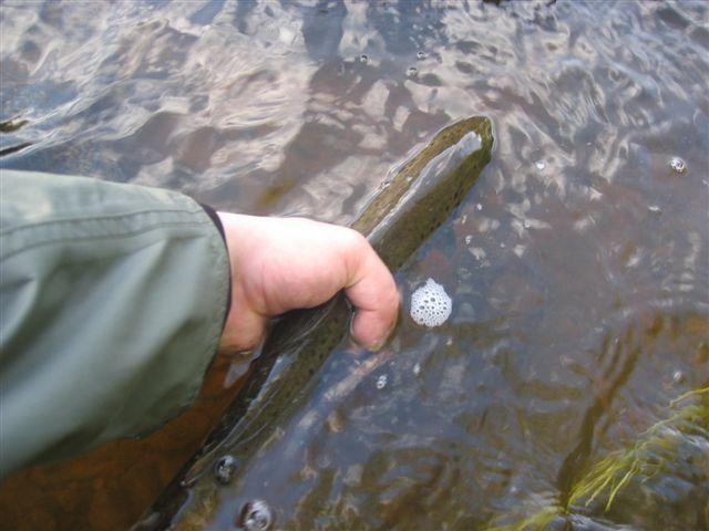 Pari mustaa kuulapäätä kiinni ja pikku hiljaa niskalta alaspäin. Ensimmäinen taimen oli kiinni n.5 min jälkeen.