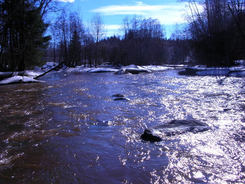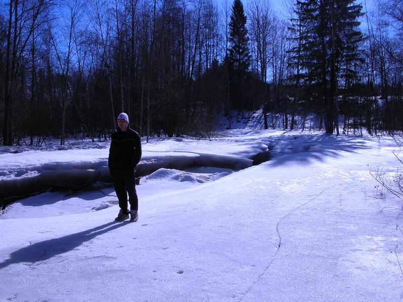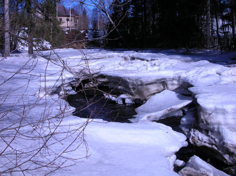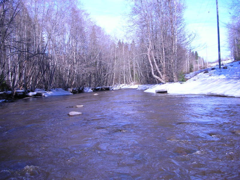 Juuson kanssa alettiin kalastaa 11.00 ja lopetettiin 17.00. Kuus tuntia kalassa ilman saalista. Tosin ei kukaan muukaan saanut kalaa. Juusolla kävi nymphissä harjuksenpoikanen. Ylös asti ei mieliny kuitenkaan tulla. Muita kalastajia oli 5-7. Vesi oli Pitkälässä erityisen mutaista, mutta ylempänä (Keskustassa ja Siikakoskessa) vesi oli kirkkaampaa. Sumareihin ei kiinnitetty humiota, koska uitimme ainoastaan streamereita, zonkereita ja nymphejä. Hyvällä tuurilla Siikakoskella pääsee kalaan vasta juhannuksena. =) Siellä riitti tosiaan jäätä. Yli metrin korkuiset jäävallit peittivät joen. Kuvista saa hieman käsitystä jäätilanteesta.