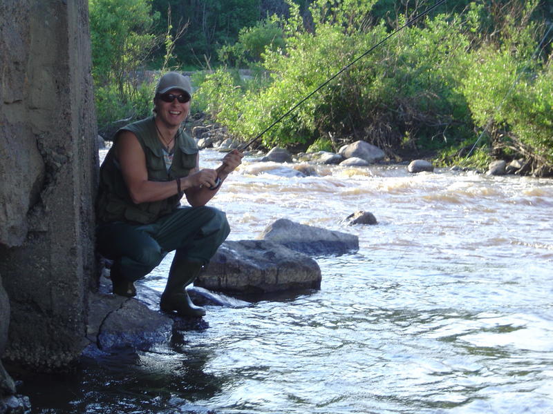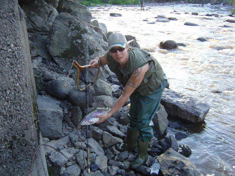 No niin...kaunis keskiviikko päivä ja elämäni toinen perhoreissu edessä. Suuntasimme kaverini Hexenin kanssa töiden jälkeen vantaankoskelle. Aluksi sää oli helteinen ja aurinkoinen. Aloitimme kalastamisen niskalta. Itse vielä kertailin miten sitä perhoa oikein heitetään. Hexen aloitti välittömästi tehokalastamisen. Puolentoista tunnin heittelyn ja pienten sinttien jälkeen Hexenillä nasahti. Niskan tuntumassa haukkasi kuulapäänymfiin varsin pirteä kaveri. Kirjoloheksi se osoittautui ja helpolla ei itseään haaviin päästänyt. Kirre otti raivoisia spurtteja ja lopulta lähti vetämään noin kaksikymmentä metriä alavirtaa myöten, jonka jälkeen hapoilla ollut kala oli helppo haavita. Pituutta komistukselle oli kertynyt 52 senttiä ja painoa oli reilu kaksi kiloa. Ei muuta ku autolle, perkaamaan ja kylmään.
