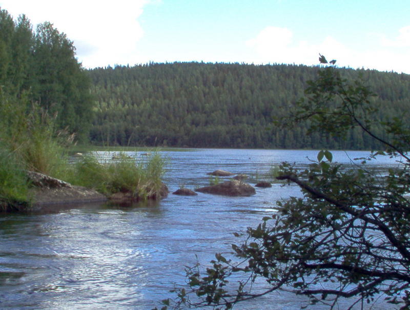 Joni oli ryhtynyt kalastamaan aamulla sivu-uomia ja tulikin kertomaan meille hyvän uutisen. Hän oli saanut 3 taimenta. 15cm, 35cm ja vähän reippaan 40 cm, jonka hän otti ruokakalaksi, kalan vuotaessa verta.