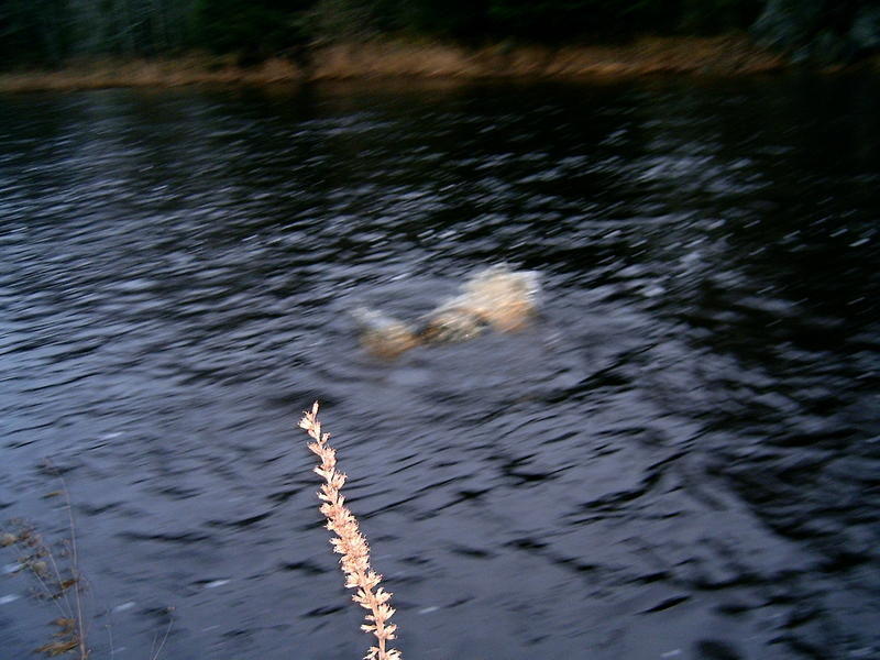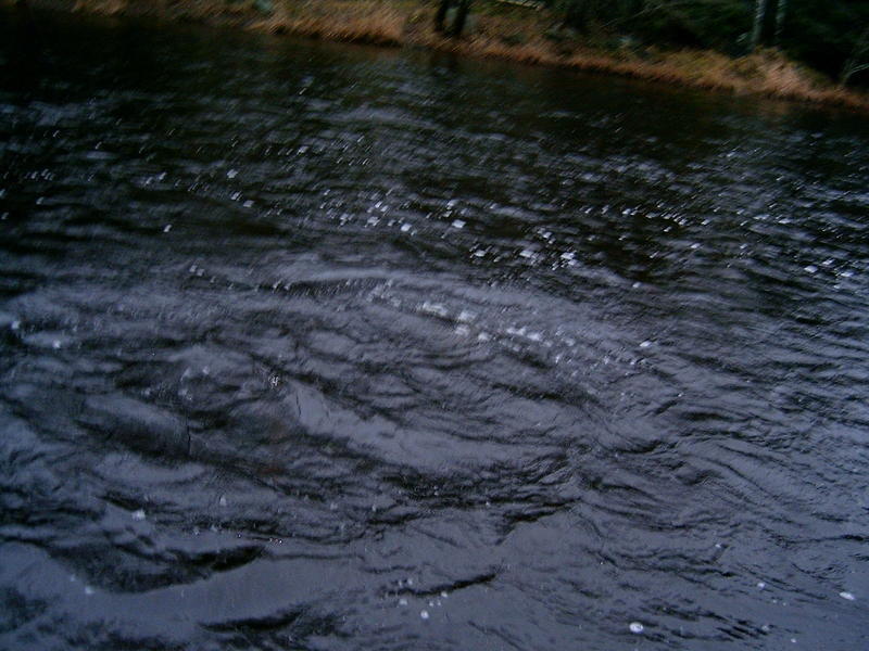Kala tuntui ihan hyvän kokoiselta ja oli aika rauhallinen. Kalan koko selvisi vasta kun kala alkoi hyppimään, n.4 kilon musta naaraslohi. Kala ei ollut mikään erityisen kova taistelija ja aloin jo kohta yrittämään sitä maihin, vaan mistä, siinä pulma. Parin sadan metrin matkalla ei ollut ainuttakaan koloa josta kalan olisi voinut vetää rantaan, ainoa vaihtoehto oli tailaaminen. Ensimmäisellä yrittämällä kala lähti liukkaasti takaisin keskemmälle ja vääntö jatkui vielä hetken. Toisella kerralla kun sain kalan itseni yläpuolelle (seisoin vedessä n. metrin päässä rannasta) kala päättikin seota ja lähti vauhdilla alas itseni ja rannan välistä. PING, *****! No eipä mitään, homma jatkuu.