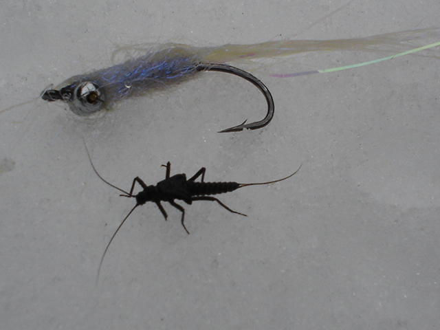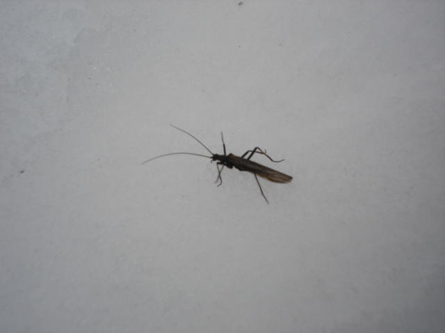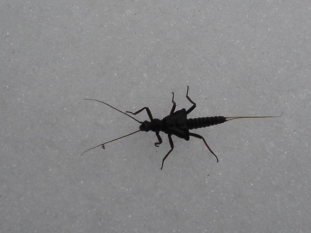 Ei kun takas ylöspäin ja niihin mestoihin jossa vettä oli näkyvissä. Heittelin virtapaikkoihin putkiperhoa ja jääpuikkoa, mutta mitään ei kuulunut. Sillan alapuolella olevassa suvannossa oli sumukorentojen "maihinnousu". Näin hangella yhden aikuisen ja kaksi kuoriutumaan noussutta nymfiä. Nämä olivat muuten elämäni ensimmäiset sumukorento havainnot!!!