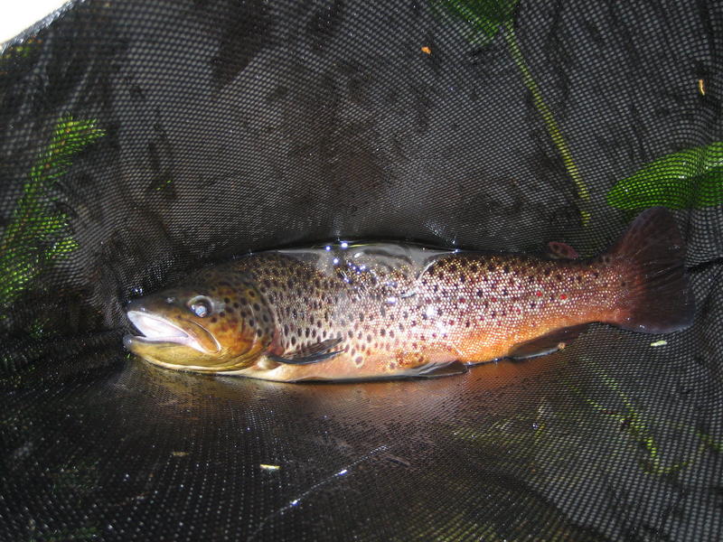 Menin vielä käymään niskalla josta ihan niskan yläpäästä sain pirteän taimenen joka sai vapauden. Sitten oli hiljaista pidemmän aikaa ja taas sillan alle ihan sieltä viimeisien pintakivien läheltä tärppäsi vielä ja 42 cm jonka päätin "säkittää"...