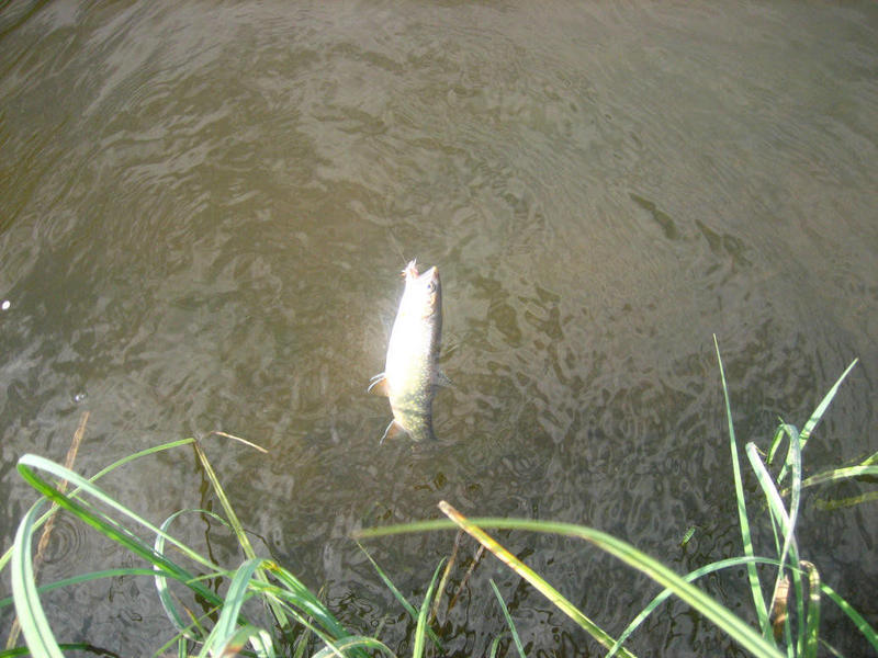 Tulin purolle noin klo 14. Vesi oli kirkasta ja melko matalalla. Hiippailin siinä sitten ylävirtaan päin tähyillen samalla kaloja. Joitakin pieniä sinttejä näky jonkin verran enkä kiinnittänyt niihin sen enempää huomiota.. Jatkoin matkaa ylävirtaan päin kunnes näin tuikin jonkin matkan päässä. menin lähemmäksi katsomaan ja kala paljastui harjukseksi. Tarjosin kalalle aluksi klinkhämmeriä, jota kala kävi katsomassa mutta ei ottanut. Sitten kokeilin kaikenlaisia perhoja mutta nekään eivät kelvanneet. Jatkoin matkaa ylöspäin ja näin harjuksen jolle näytti pintaruoka kelpaavan, sidoin siimaani Nalle puhin ja heitin perhon kalan yläpuolelle ja annoin valua virran mukana alaspäin. Kala otti perhon ja hetken pyristelyn jälkeen laskin hieman alle mitallisen harjuksen takaisin. Jatkoin kalastusta ja sain useita puronieriöitä, jotka laskin takaisin...
