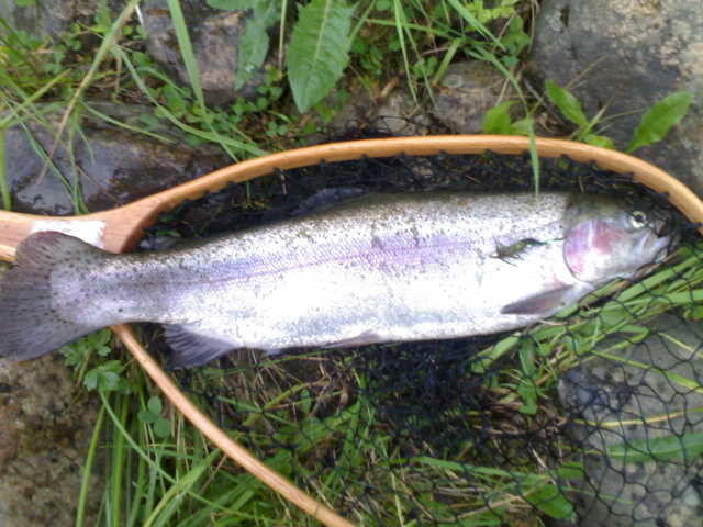 Anoppilan kattotalkoissa ja heti, kun homma valmis, luvan ostoon ja kalaan. Alotin Kairokosken yläpäästä kalastaen alaspäin hyvännäköisiä mestoja, saamatta mitään kosketusta kaloihin. Kunnes Kairokosken alakuohuilla vihreään Conehead liitsiin tarrasi jotain. Pari-kolme syöksyä se esitti ja vapa rupesi jo tutisemaan, olihan kiinni kenties ensimmäinen perholla saatu mittakala. Kala antautui loppujen lopuksi aika helposti ja sain sen haavittua. Paljastui, että perhoa oli purrut Kirre 47cm ja 1.2kg. Tulihan se mittakala sieltä vihdoinkin ja mies oli onnellinen. Jussikalaks lähti, olihan se ensimmäinen.
