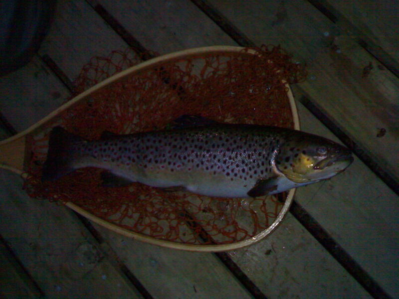 ja perho irti. Ei siinä mitään ja jatkoin taas kalastusta entiseen malliin. Menin hiukan alemmas kun alkoi jo ilta hämärtyä niin sitten alkoi syönti parantua ja alamittaisia taimenia tuli muutama. Lopuksi sain narrattua mittataimenen ja