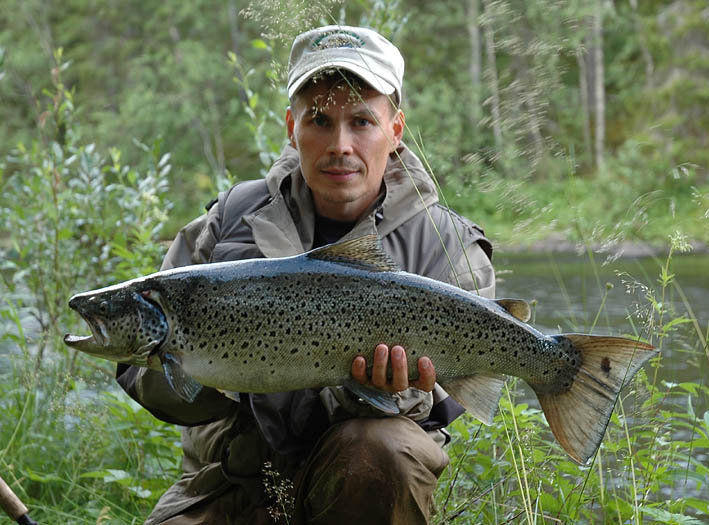"Tällä taimenella oli sellaiset lähdöt, että onnekseni olin tarkistanut kelan jarrun ennen kalastusta. Olen usein nähnyt ja kuullut kuinka liian tiukalla olevan jarrun vuoksi paksukin siima napsahtaa poikki ison kalan ottaessa lähtöjä.