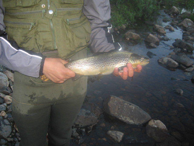 Alku näytti lupaavalta sillä jo kolmannella kävi hieman mitallista kookkaampi kala pyörähtään vaalean streamerin perässä.Ensimmäisenä päivänä emme kuitenkaan mainittavia saaliita saaneet, muutamia noin 35 senttisiä maailman kauneimpia taimenia, jotka pääsivät tietenkin takaisin omaan elementtiinsä.