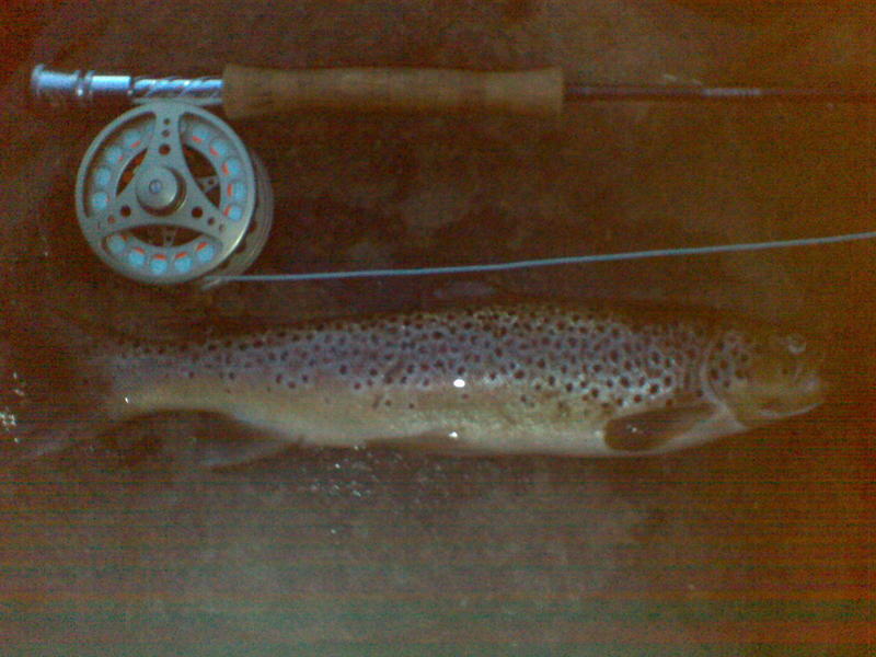 Taisi olla ainakin keväällä istutettu, kun veti kohtuudella siimaakin. Taimenella meinasi olla ihan omat aatokset minne mennä. Mukava taistelu joka päättyi kuitenkin voitoksi.
