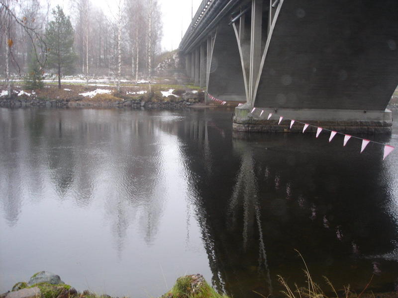 Lähettiin tappajahauen kanssa Kalakeitaalle uittelemaan vieheitä... aloitimme kalastuksen ylemmältä sillalta. Jonkun aikaa paikkaa kolusimme emmekä saaneet saalista(yksi epävarma tärppi virvelillä). Siirryimme alemmalle sillalle heittelemään. Uistinta uittelin ja pian huomasin, että vieheen perässä tuli taimen! Taimen yritti kolmesti tällätä vieheeseen ja sen jälkeen katosi. Vaihdoin nopsaan perhovehkeet. Uittelin liitsejä paikalla jossa havaitsin taimenen ja sainkin koukkuuni kaksi harjusta... n. 30 senttisiä molemmat(saivat toki vapautensa takaisin). Perhoja siinä jonkun aikaa viskelin eikä kaloja näkynyt. Vaihdoin taas virveliin ja pian sainkin perus kirren. Kirren jälkeen muutama tärppi ja sen jälkeen hiljeni... siihen oli hyvä lopettaa päivä :)