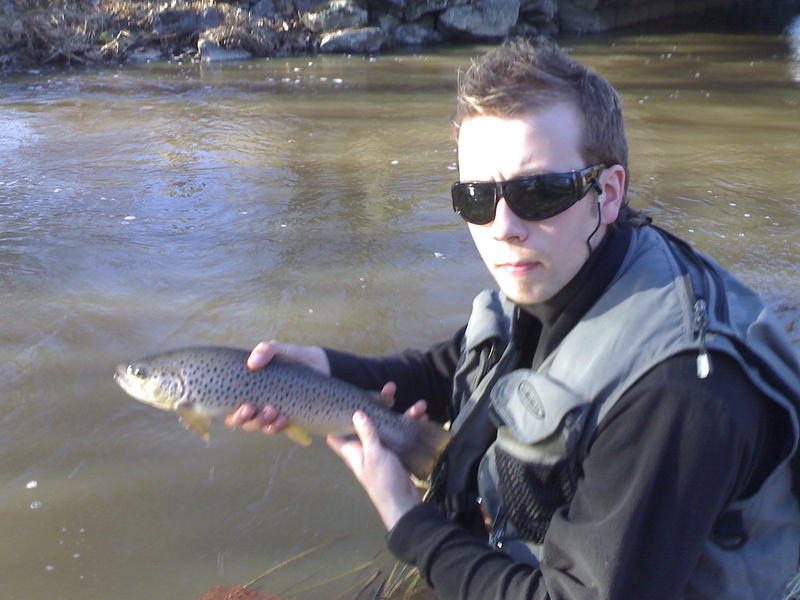 Hieman ennen siltaa sain aika hyvän pommin liitsiin ja....irti.Noh..muutaman ärräpään ja hatunpaiskomisen jälkeen kalastus jatkui. Uusi tärppi... ja sen verran oltiin nyt hereillä että kiinni pysy, taimen ylös kuvaus ja takaisin :) . Noin 42 cm, yllätävänkin laiska kala mutta mieltä Ylentävä silti. Kaveri heiti tyhjää vieläkin, ja alko uhoon jo MP-reiisua itelleeen :I..