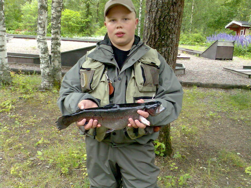 Kalasteltiin lehtisellä ja hetken ku oli viskonu, niin päräytti toinen kirjo kiinni ja se siinä juro ja sit kun sen sai ylös niin kaveria rupes kyrpiin ja toden teolla.