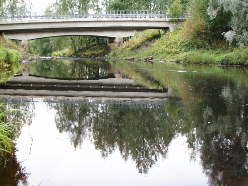 Joo kyllä kaloja on pitkin jokea. Kuvan kohdassa on melkeinpä aina kala tuon kiven luona mikä näkyy keskellä jokea.