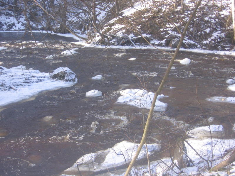 Tulin juuri n. 15 min. sitten Nukarinkoskelta kalasta. Alku näytti tosi pahalta... Vesi oli korkealla, rannoille oli ilmestenyt 2m leveät jääreunukset ja koskien pohjat olivat hyhmän peitossa.