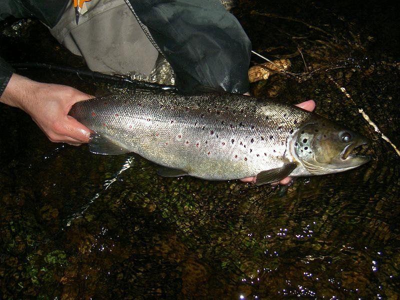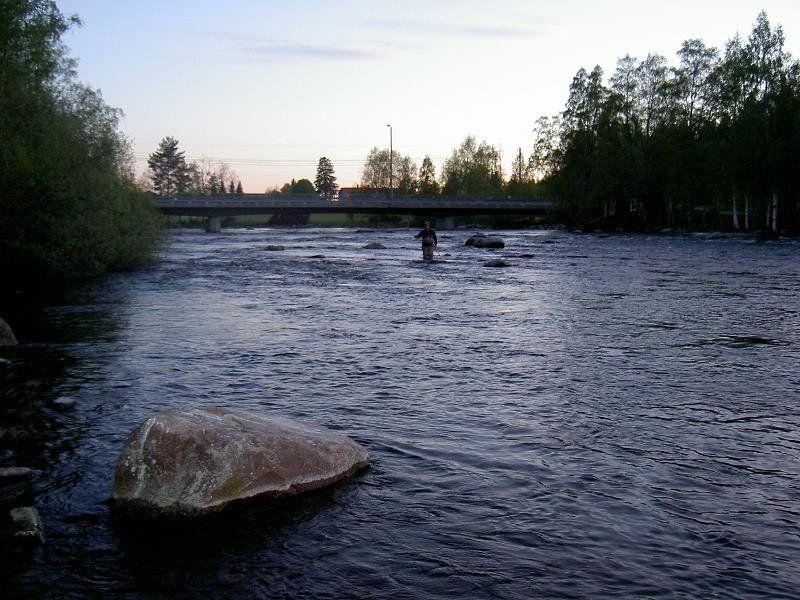 Illan vaihtuessa yöksi oli kaverin kanssa suurin saavutus pari kertaa siimat silmille ja yksi alamitaisen haavissa. Noin klo. 1.30 kuului vastarannalta huuto voisko tulla ottamaan kuvan. Rajun mittaus session jälkeen kalan pituudeksi saatiin 57.5 cm. Kala kirkas komea taimen joka ennen pääsyään takaisin oksenti särjen suustaan.
