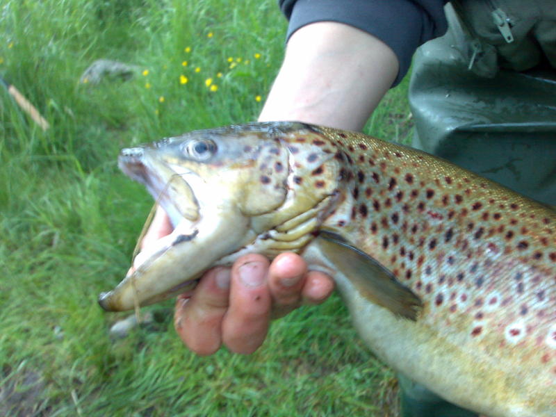 Aivan koskenloppu osasta simppu jäljitelmään nappas ja lähti vetelemään koskea ylös päin. Shown jälkeen tulikin huomattua, että tuli repästyä henk.koht isoin taimen mitä nurmijoelta on saanu.