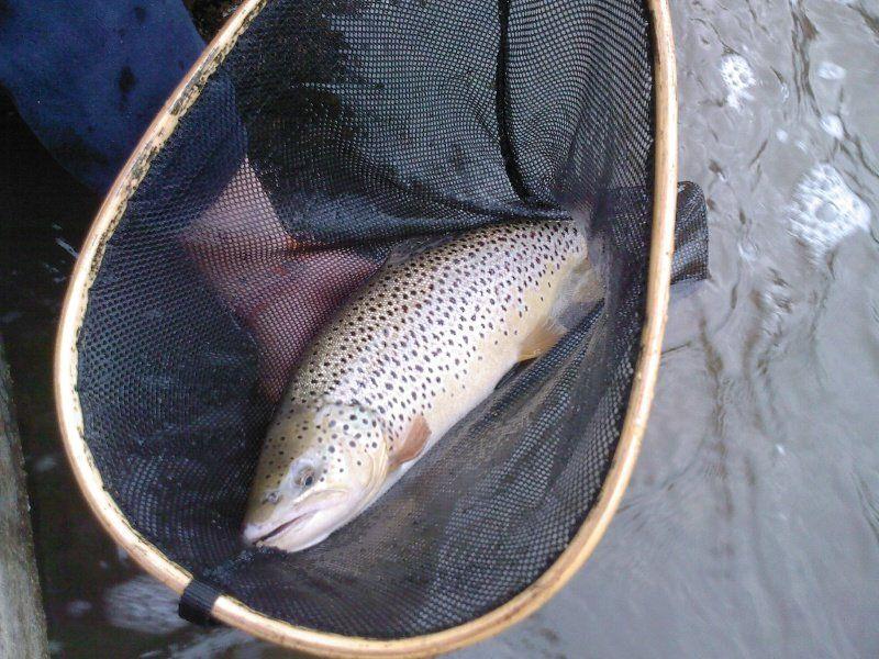 Joo elikkä taas kerran 2h tunnin pikareissu vanskille ja tällä kertaa hieman kookkaampi kala. Tuttu kehä3 pooli, pieni #12 vihreä/musta kuulapää leech ja vapa taipui. 10min väsytys ja 47cm/2.5kg (näppituntumalla) mörssäri taimen haavissa. Muutama kuva ja takaisin koskeen kasvamaan.