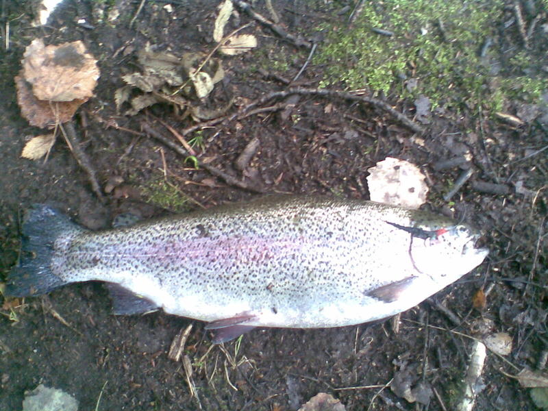 Harjoitus tuotti tulosta sillä muutaman tunnin jälkeen oli kala kiinni ja melko pitkän väsytyksen jälkeen ylös tuli vajaa kilon kirbeli.Myöhemmin kaveri sai vielä lähes samankokoisen.Olipa mahtava reissu ja kipinä perhokalastukseen lisääntyi entisestään =D