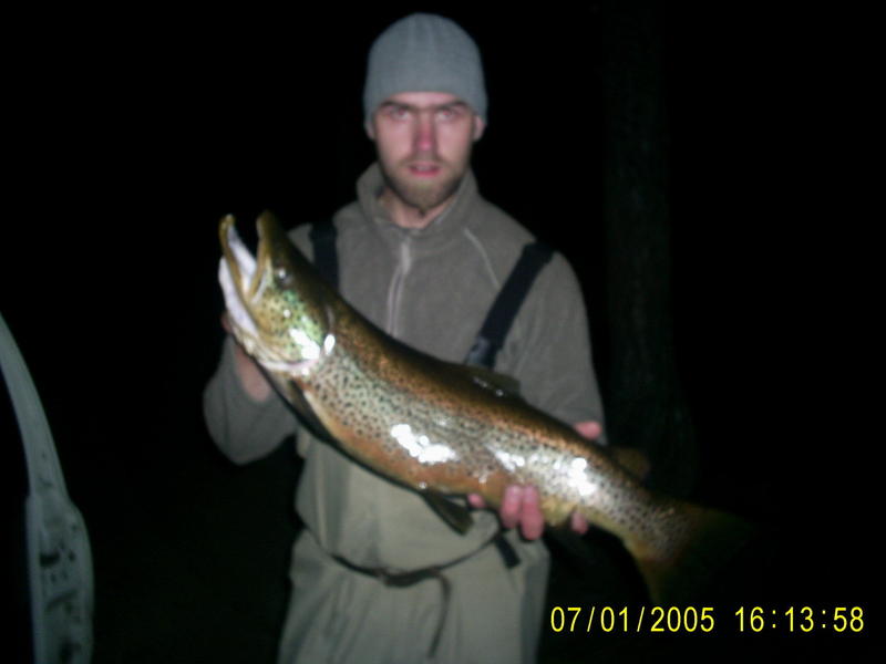 Laurin päivä oli kääntynyt jo yöksi, kun vapa taipui pitkän odotuksen jälkeen. Vihdoin kunnon juutualainen taivutteli vapaa. Samoilla kohdilla oli ollut illan mittaan pari vaimeaa tunnustelua. Parinkymmenen minuutin ja parin loikan jälkeen oli kala valmis tulemaan rannan puolelle. Kiitokset Peltsille joka auttoi kalan kuiville ja otti parit fotot.. Kuvan päivämäärät vähän pielessä..