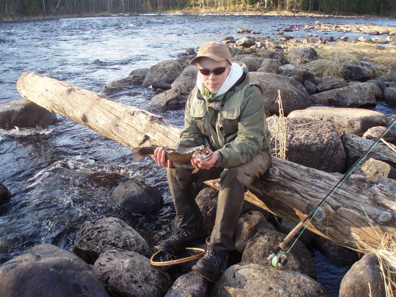 Perjantai klo 18.00 leiri pystyyn Siikakosken uittopadolle ja eikun kalaan! Samana iltana Murroon niskalta ensimmäinen kirjo haaviin. Ja heti perään pienempi taimen joka sai jatkaa uiskenteluaan.