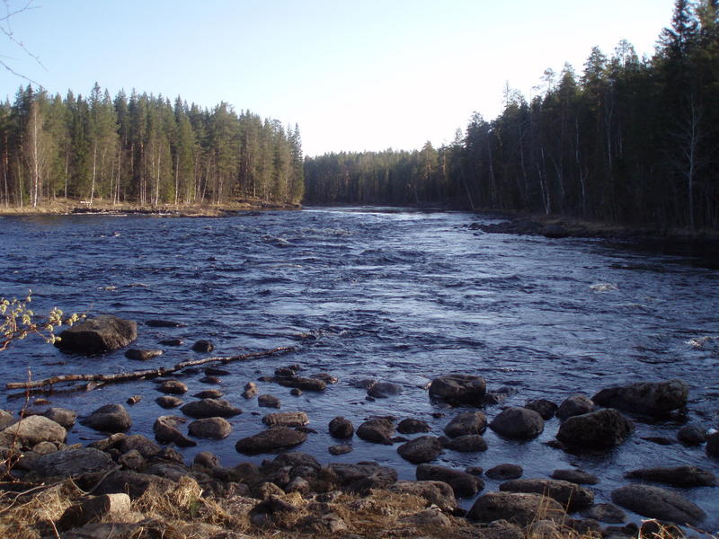 Lyhyeksi jääneitten yöunien jälkeen aamulla (5 aikaan) takaisin kalalle ja kaverilla ennen kuutta kauden avaustaimen haavissa. Ei siinä kerennyt kauaa ihmettelemään kun jo itselläkin nappasi Siikakosken laavun kohdalta. Mukava kirjolohi antoi mukavat kyydit hienon hypyn saattelemana ja kohta 1,2 kg kirjo haavissa. Molemmat kalamiehet tyytyväisenä päiväunille!