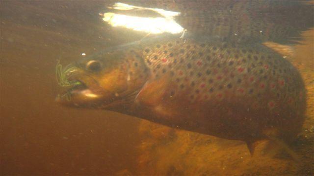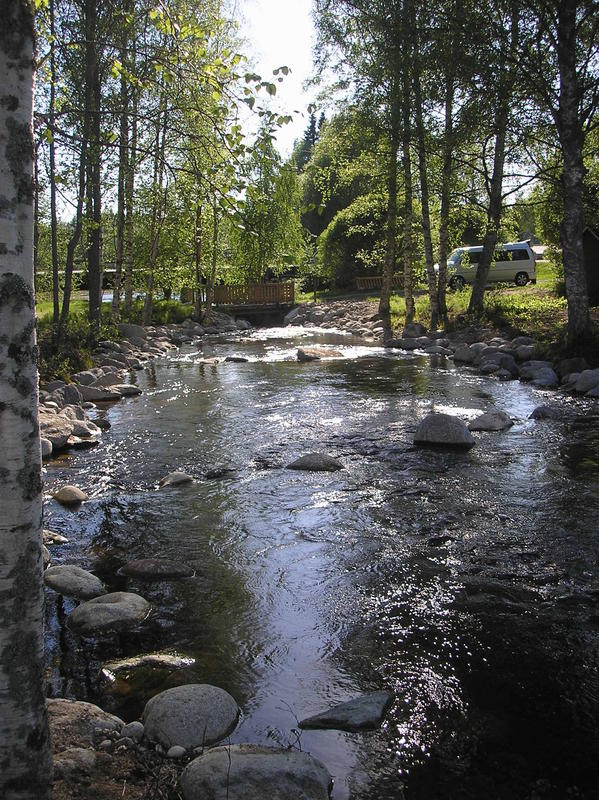 Ennakkoluulottomasti litka kasaan ja kiven takusia ja kuohuja kolistelemaan. Lirkin tarkoin kiven huopeita ja kalan oloisia virtoja pitkin koskea kunnes saavuin sillan juurelle tasaiselle kohdalle. Erään kiven takana litka pysähtyi, mutta pohjan sijasta litkan päässä riuhtoi väkivahva taimen. Kalan suunta selvisi saman tien kun 5# vapa oli kahvaa myöten mutkalla ja taimen puhalsi mennä alavirtaan,kohti kosken kovimpia kuohuja. Hankkijan sanojen mukaan rymistin mennä kalan perässä kivikkoista rantavettä myöten kun hirven vasa, mutta sinnehhän se jonnekkin kuohujen seassa olevien kivien sekaan itsensä tartutti. Ainoa asia mitä minulle kalasta jäi oli jumalattomat mustelmat jalkoihin. Tekniikasta vielä sen verran, että aion käyttää sitä myös tulevaisuudessa.