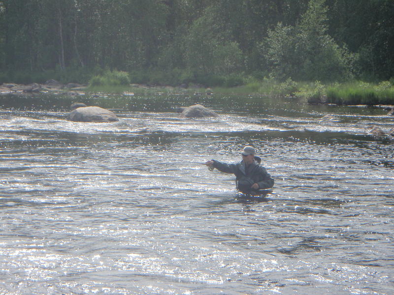 Keksittiin lähteä taas Leveänkoskelle. Harjusta nousi kiitettävästi ja Janne sai 43cm taimenen.. Loppu päivä turistiin joutavia..