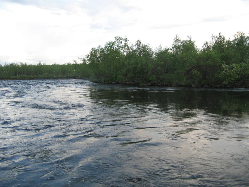 Ohessa Könkämänenon harri elävänä - pituutta 43 cm. Paikkana Ainuvarppi 20.7.2009.