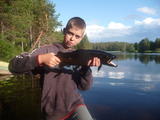 Näytti että reissusta tulisi täysi katastroofi kun kaloja ei näkynyt, niin päätettiin tehostaa kalastusta eli mentiin jo aamulla kalaan ja sitten vielä illalla. Ja niinpä heti aamusta sain n. 1kg taimenen ja illalla faija sai ihan kunnon kokosen kalan jota joutu väsytttelemään ihan kunnolla. Lopulta 1,8kg taimen saatiin rannalle ja siihen oli hyvä päättää se päivä.
