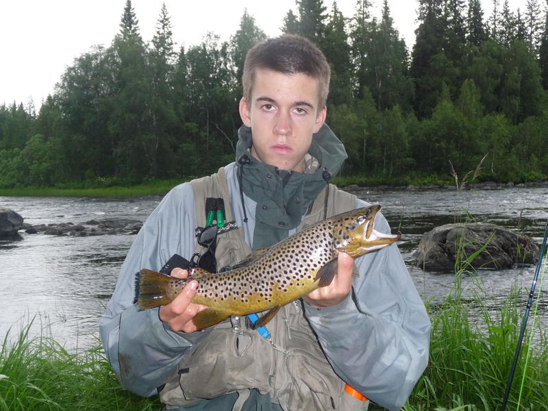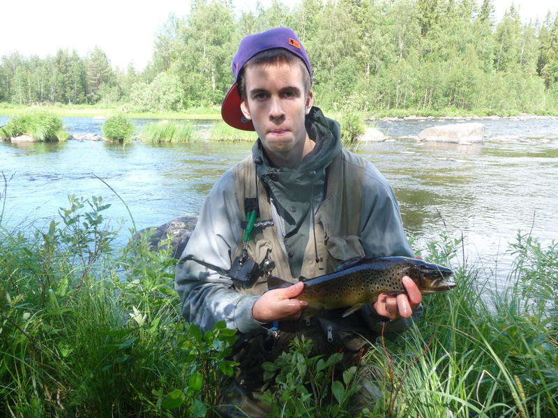 Aamupäivän kalastus Leveänkoskella tuotti taas tulosta. Pikkubroidi repäsi eka 50cm taimenen ja sitten mä sain 48 cm taimenen. Mentiin vielä yöllä kalaan mutta ei tullu mitään. Aina illalla oli porukaa ihan pirusti mutta päivällä sai kalastaa rauhassa ja kalaa tuli paremmin.