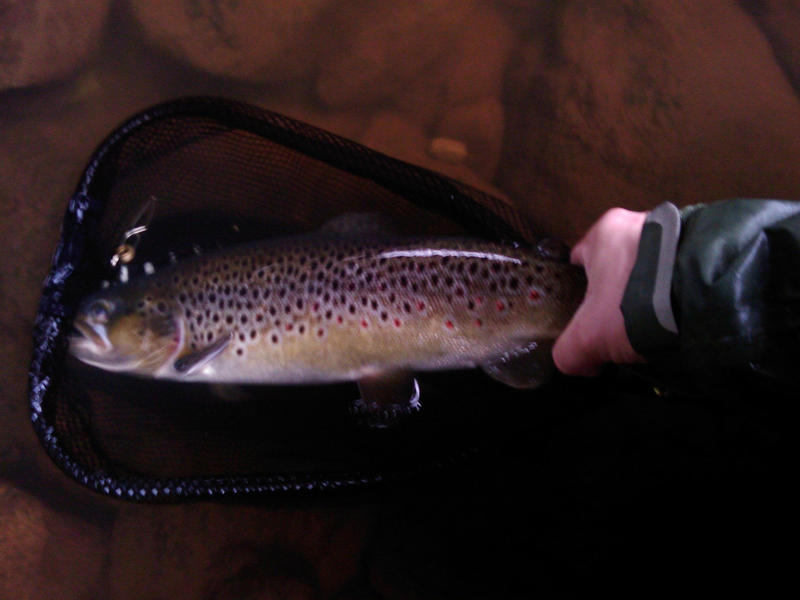 Kuva otettu kännykän kameralla, josta ei salamaa löydy, joten kuva on hieman tärähtänyt. Taimen pääsi kuvauksen jälkeen takaisin kasvamaan.