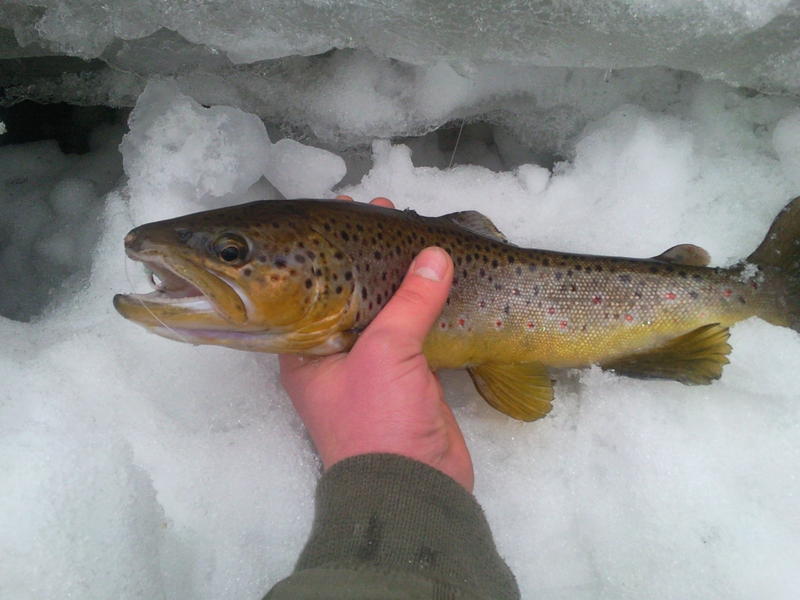 Kevään toinen reissu karkkilaan. Sää oli huomattavasti mukavampi kuin viikkoa aiemmin ja pelipaikkoja enemmän auki. Aikani heiteltyä pitkälän "alaosassa" tärppäsi elämäni eka perho taimen,antoi erittäin mukavan vastuksen ja noin 5 minuutin väännön jälkeen sain haavittua kalan. Mittaa ei ollu mukana mutta arviolta 50 senttii pituutta,tosin aika laiha oli.. Nopean kuvauksen jälkeen takaisin veteen. Ottipelinä toimi itse sidottu valkoinen liitsi. Muita tapahtumia ei ollut,mutta tyytyväinen olin silti!
