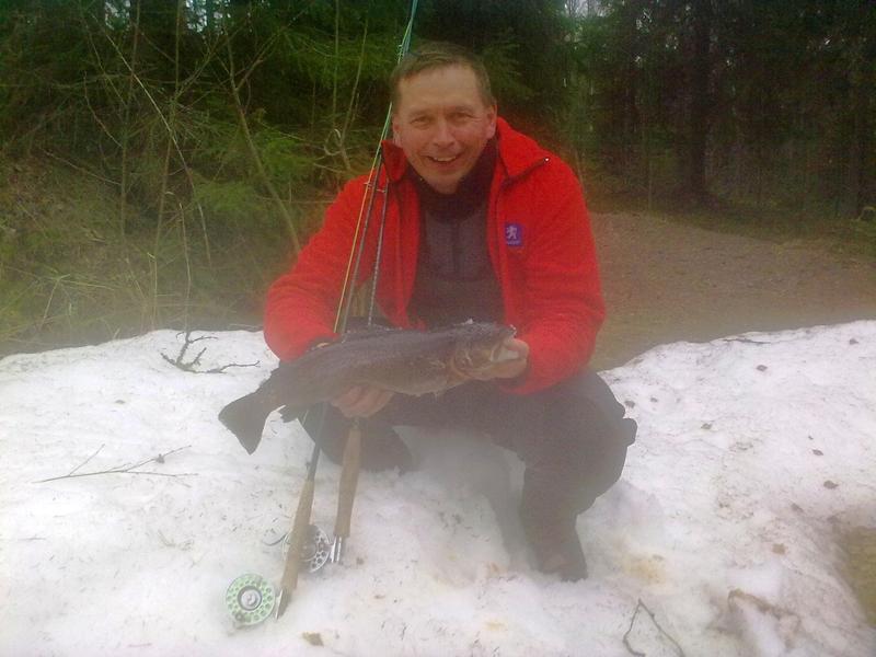 Onnea mukavan kokoisesta taimenesta! Paljonko oli kalalla pituutta? Kärnällä on tuntunut olevan tosi mukavasti kalaa nyt keväällä. Samaa kyllä kuulunut myös Nurmijoelta ja Nokisenkoskelta. Liekkö sitten jotain vaikutusta ollut viime kesän vähävetisyyden suhteen. Maalaisjärjellä luulisi, että vähemmän vaan jäisi kalaa...No tiedä häntä. Hyvä kun tuntuu pojilla nakertavan. Saapa nähdä pääsisikö Kärnälle toukokuun alussa. Ilmeisesti vesitilanne ei kauheaa tulvaa ennakoi...