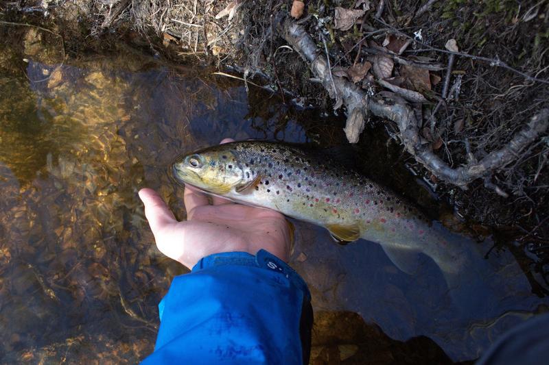 Perhostettiin sitten monta tuntia saaliitta,kunnes toisella tovereista tärähti niskan toisella puolella Nätti taimen,perus-mustalla liitsillä aika miedosta virrasta.