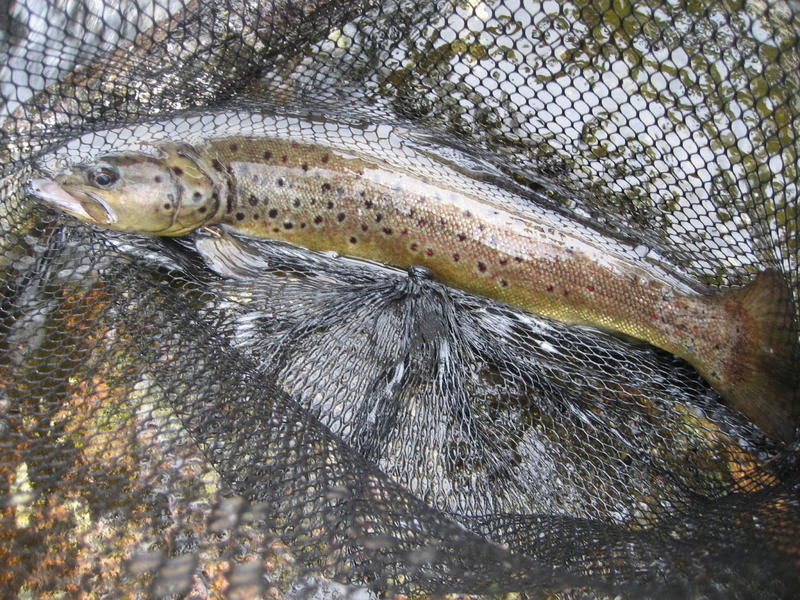 Jatkoin alaspäin ja pikkuniskalta ennen koskea taas samaisen pupaan kiinni kala, joka olikin jo harvinaisen pirteä. Väsyttelin kalan haaviin ja mittauksen(40cm) ja kuvausten jälkeen sekin pääsi kasvamaan.