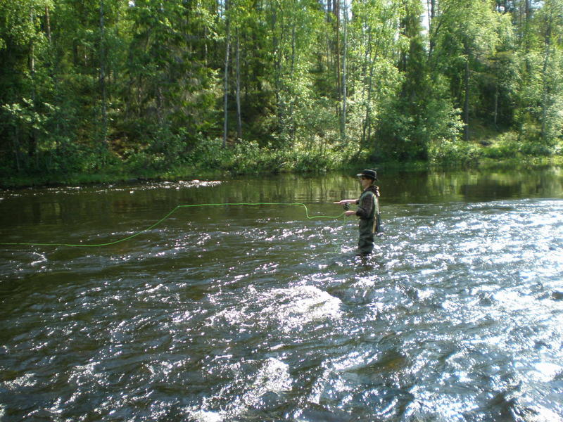Jykelle: Kyllä siellä pari komeaa taimenhyppyä näkyi, suvannoissa kaukana rannoilta tosin. Muita kalamiehiä ei kovin paljoa näkynyt.