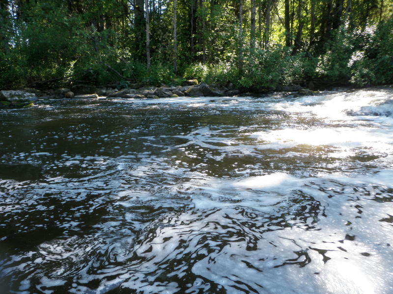 Töiden jälkeen kokeilemaan uutta vedenalla kuvauksen mahdollistavaa digikameraa, tietysti perhovapa ja kela mukaa pitäähän sitä jotain kuvattavaakin olla =)Vesi on nytten kesän mittaan tippunu alas koko ajan tällä hetkellä mennää jo tosi matalalla. Onneksi joesta löytyy paljon syviä monttuja kirjolohille missä olla rauhassa, ellei joku perhokalastaja uita värikästä liitsiä naaman vieree :P pari kolme tuntia joealla ja saaliina noin 8-9 kpl kirjolohia(menee laskuissa sekaisin). Hirveä helle meinas läkähdyttää onneksi löyty muutama varjo paikka missä pysty kalastelemaan.. kaloista ei tullu otettuu kuvia ainoastaan videokuvaa veden alta, mutta maisemii ja itse jokea kuvailin. Kaikki kirret c&r nyt ei tultu ruokakalaa hakemaa...