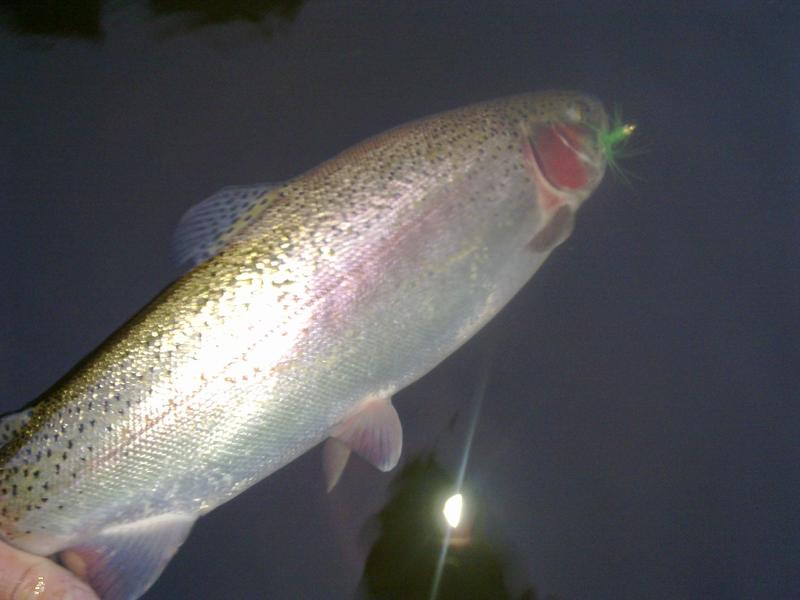 Iltakalaan töitten ja pokerin jälkee.. aloitin tutuista paikoista tutuilla perhoilla mutta mitää ei tuntunu tapahtuvan vaikka kuinka yritti... Sitte ajattelin vaihtaa keltaisee liitsii ku sillä tuli toissa yönä pari kirree.. pari kertaa pääs näkemää kirren mut ei sitte kiinni kuitenkaa... vähän aikaaaa pähkäilin että mitäs sitä yrittäis. Kello alkoi painaa ja baari kutsua mut ennen yhtä kirree en suostuis lähtee ihan heti.. sitten vaihdoin kirkkaan vihreen liitsin ja melkein heti kiinni. erittäin pirteä kala ei ehtiny kelaamaa ollenkaa joten piti vaa naruu repii sisää ja ulos.. jooh.. tossa puhunu ku ei kalastuksen valvojii näkyny nii nytte tuli iloinen valvoja kysymää lupia ja hetki siinä turistiinkin.. hyvä että tarkistaa lupia. älkää teloittako mua ku kännis rustailen päiväkirjaa :P