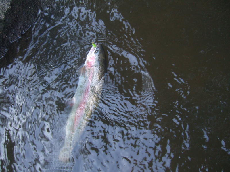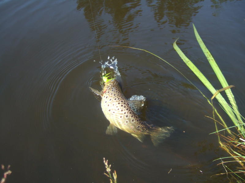 Siinä sitten ihan komea tärppi yhden risukon edustalta.Jatkoi taas kivien kolumista kunnes tuli taas yksi tärppi mutta vain kylki vilahti. Vaihoin lime vihreesen liitsiin ja aloin pommittaa aluetta kunnes n. 5 min jälkeen ison kiven sivustalta sitten tärppäsi ja tällä kertaa pysyi myös kiinni.