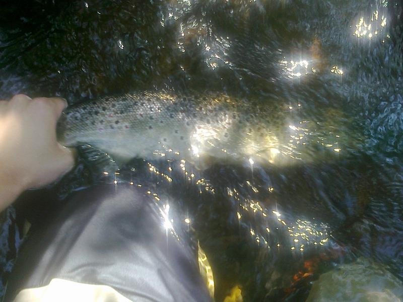 Nurmijoella näkee kyllä monesti juuri näitä että 'ei sieltä mitään tule'! Eräskin vanhempi mies väsytteli taimenen hissukseen, otti pyrstöstä kiinni ja napautti papilla, ja laski veret siinä saman tien ja pujotti kalan pussiin kahluuhousujen sisään kuin mitään ei olisi tapahtunut.