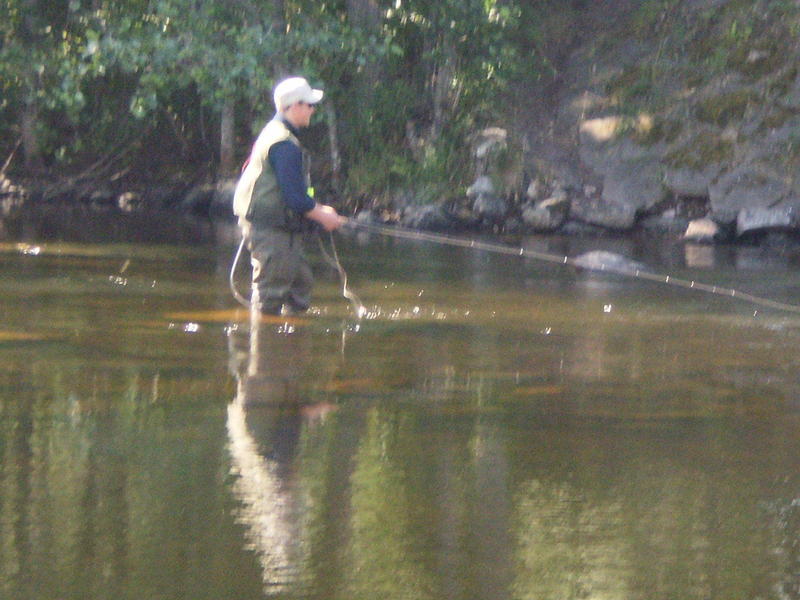 Saavuimme koskelle klo: 10:00 Kävin hakemassa luvan kahvilasta ja alotin kalastamaan sillan alapuolta jossa viimeksi kun kävin niin oli tapahtumia kymmenen kunta mutta huonot koukut joten saalis jäi 0:llaan.
