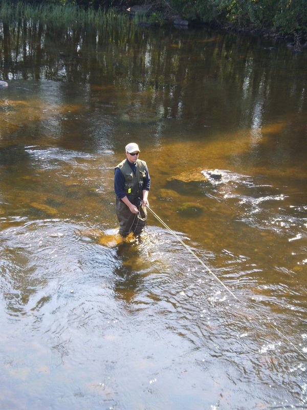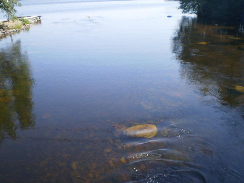 - Vielä yksi havainto oli vähän ennen kahtatoista kun rupesin kalastamaan sillantoista puolta, näin pohjassa olevan vähän isomman kalan ajattelin että olisiko taimen tuossa varjossa kiven vieressä niin katoin laseilla niin taimen se oli ihan hyvänkokoinen muttei ottanu kiinni vaikka viereen heittelin hetken joten annoin olla ja jatkaa matkaa=)