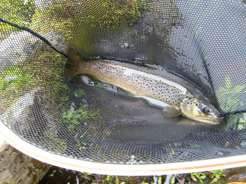 Kauden ekan tanen jälkeen jatkoin pikku-uoman kalastelua ja n.10min edellisestä vapa jälleen nytkähti ja samantien oli n.20cm tane ilmassa. hetken aikaa se esitti komeita voltteja ennen kuin suostui irrotetavaksi.