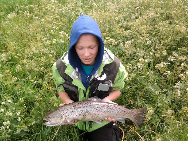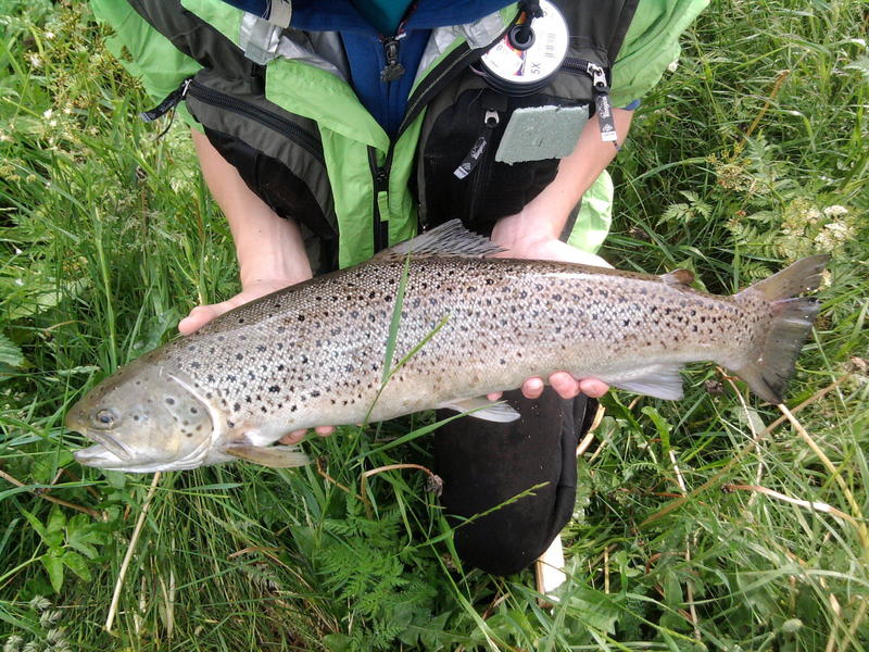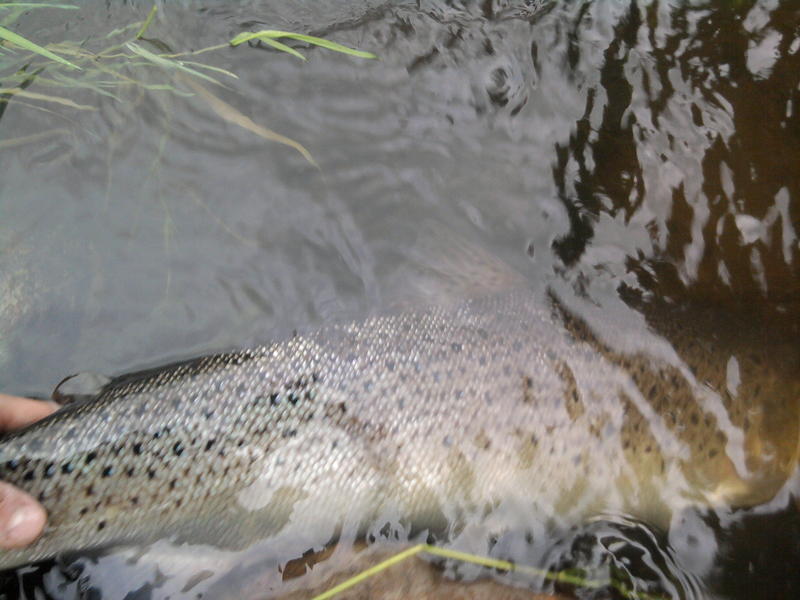 Käveltii sit sinne aika alas asti sellassee pikku virralle mis oli pari kivee .Siitä kaveri sai sitte yhen pienen killen mikä pisti ihan kivasti vastaaan.