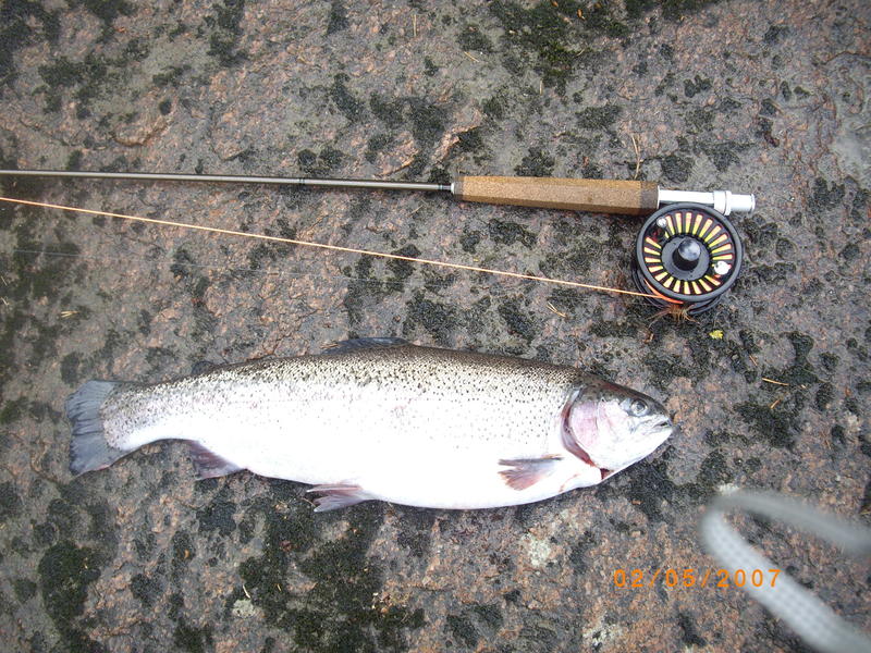 Lähdin kalasteleen Lankoskea mustalla pupalla ja kyllä siellä koskessa elämää oli neljä alamittaista harjusta siinä koukusta vapauttelin ja kyllä siellä vielä perhon tökkijöitä oli toin mokoma mutta kirjoja ei näkynyt niinpä ajattelin vaihtaa koskea. Suuntasin Hongonkoskella ja ajattelin kokeilla pinturilla(klinkki) siitä suvannosta yhden kirjon karkuutuksen se antoi ja alamittaisen harjuksen. Sitten alko sataan ja alattelin suunnata niskalle päin jutteleen muiden kalastajien kanssa siinä kun aika juteltiin vesisateessa huomattiin että niskalla hyppii komia kirjo. Kokeilin ensin onnea klinkillä mutta ei mitään sitten laitoin nalle puhin alko tapahtuun siinä vähän aikaa kun väsyttelin niin kyllä se kala sieltä haaviin asti tuli vaikka pelkäsin että menee siima poikki kun kärki oli 0.16 mm. Kuvaus ja kalan punnitus (1950g) ja sitten matka jatku kotia kohti.