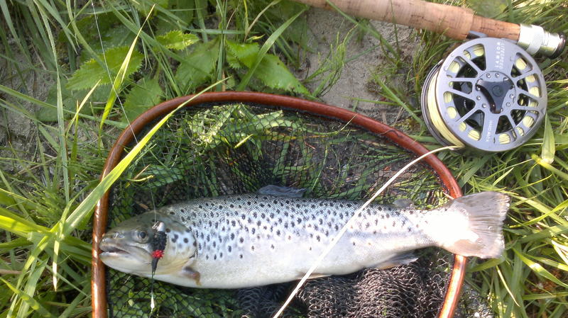 Kalastelin tovin eräältä isolta kiveltä käsin, josta olin paikallistanut 3 jättimäistä kalaa joen pohjalla. Luonnollisesti koetin uittaa näille raskaita ja muutamaa rajulla värityksellä varustettua streameria. Kiljuvan kirkkaan punainen MA leech teki tulosta erään brown troutin pään menon eteen ja se olikin aika jännää kun mukavan pirteä brownie vei siimaa hieman ja väänsi kivasti vapaa, lisäksi yksi näistä jättiläisistä suuttui tästä kun pienempi tuli hänen reviirilleen ja lähti sitten raketin lailla sitä pienempää häätämään, hienon näköistä oli kokonaisuudessaan, komeaa luonnonkalojen käyttäytymistä.
