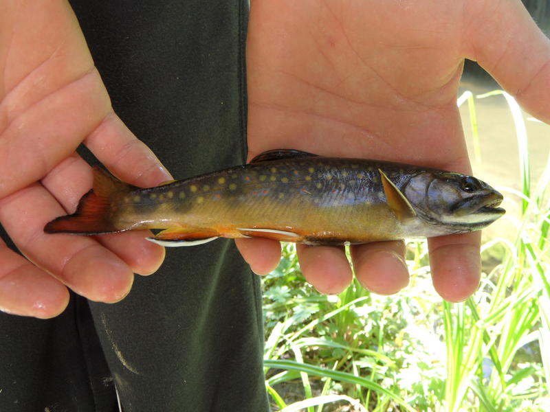 Siirryin alemmas koko ajan kalastaen.Seuraavasta mutkasta sain päivän ensimmäisen puronieriän, nätti kala.Menin aivan viimeiselle montulle jossa, näin kuolleita kaloja.Siitä nappasin pari harjusta ja puronieriän. Velipoika eksyi samaan paikkaan ja nappasi muutaman harrin ja pari puronieriää.Oliivi pupa oli aivan ylivoimainen päivällä, miltei joka heitolla kala yritti napata perhoa suuhunsa.Minun oli aika vaihtaa perho.