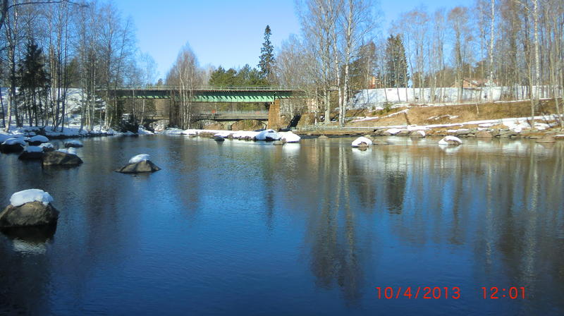 Koskelle saapuessani totesin ilokseni ettei siellä näkynyt kalamiehiä,saisin siis kalastella aamupäivän rauhassa olleita kaloja.Aurinko paistoi pilvettömältä taivaalta ja lämmitti mukavasti,oli oikein keväinen ilma.